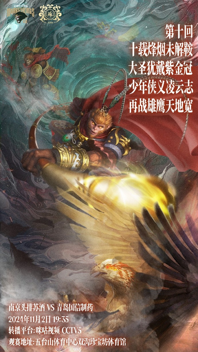 賽前,同曦官博曬出了本場(chǎng)比賽的預(yù)熱海報(bào),配文寫道:“十載烽煙未解鞍,大圣猶戴紫金冠,少年俠義凌云志,再戰(zhàn)雄鷹天地寬?!?/p>