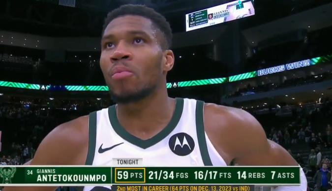 11月14日訊 NBA常規(guī)賽,雄鹿127-120加時擊敗活塞,利拉德等球員缺陣,字母哥砍下賽季聯(lián)盟新高的59分。