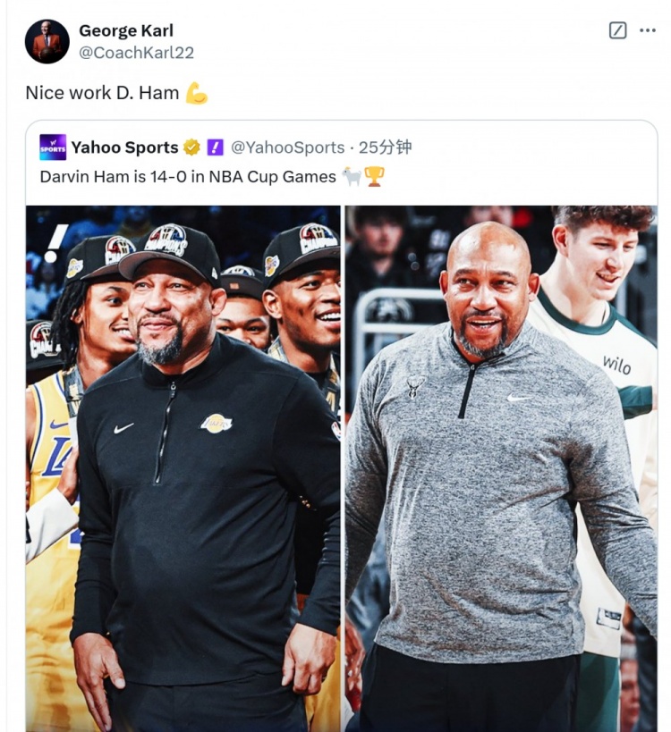 哈姆杯賽14勝0負兩連冠!喬治-卡爾:干得漂亮