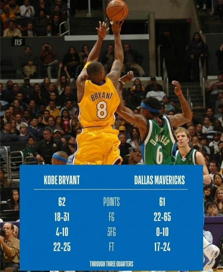 2005年12月20日,湖人坐鎮(zhèn)主場(chǎng)迎戰(zhàn)小牛??票惹叭?jié)宛如天神附體,他出戰(zhàn)32分53秒,31投18中,轟下恐怖的62分。