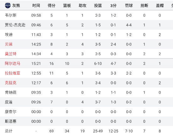 這半場球,庫里狀態(tài)糟糕,出戰(zhàn)17分鐘,5投全鐵僅靠罰球拿到2分,另有3板1助1斷1帽2失誤,正負值-26。