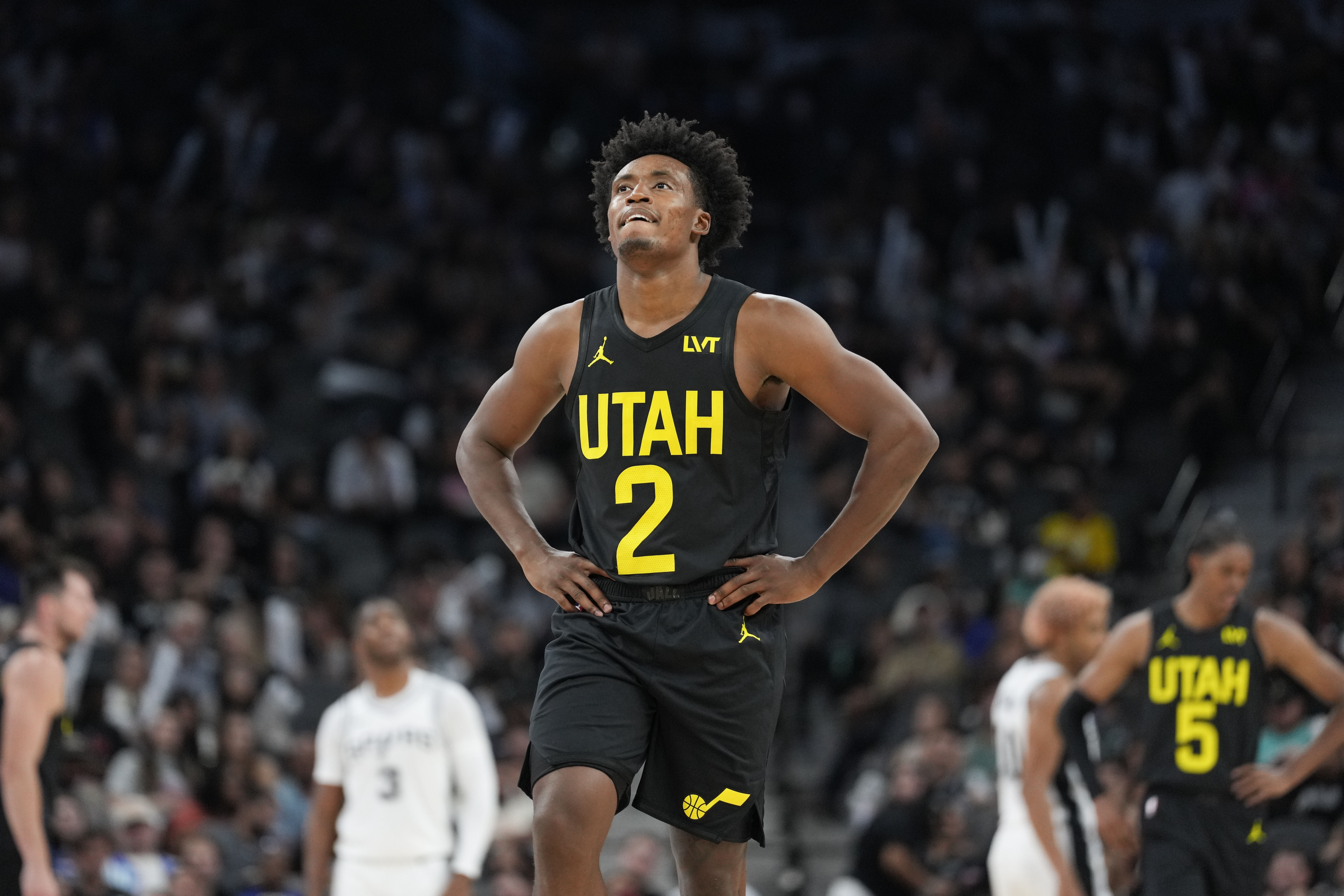 上半場,爵士球員馬爾卡寧和塞克斯頓的表現(xiàn)猶如過山車,兩人首節(jié)合力砍下23分,但到了次節(jié)馬爾卡寧一分未得,塞克斯頓拿到四分,球隊(duì)也是被對手瘋狂追分。