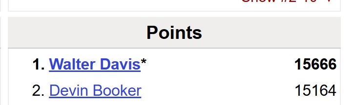 太陽隊史得分王是沃爾特-戴維斯(15666分)。