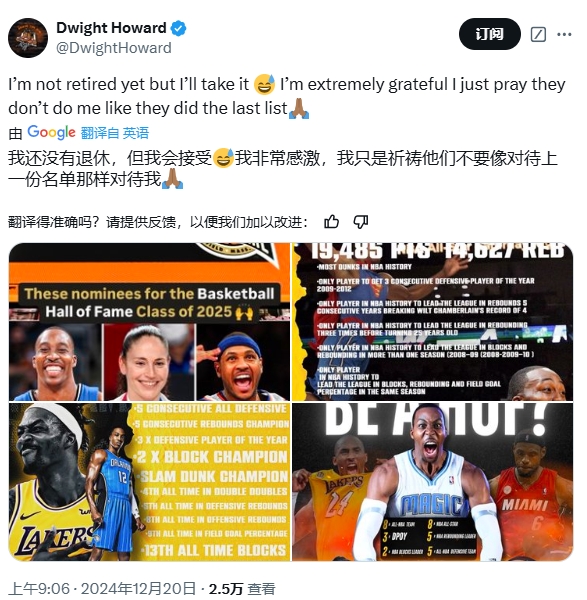 那你別進(jìn)了?霍華德轉(zhuǎn)發(fā)名人堂候選:我還沒退役呢 但我會(huì)接受