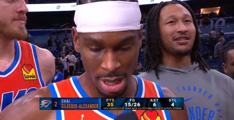 這是亞歷山大連續(xù)第16場得分25+,聯(lián)盟現(xiàn)存最長。