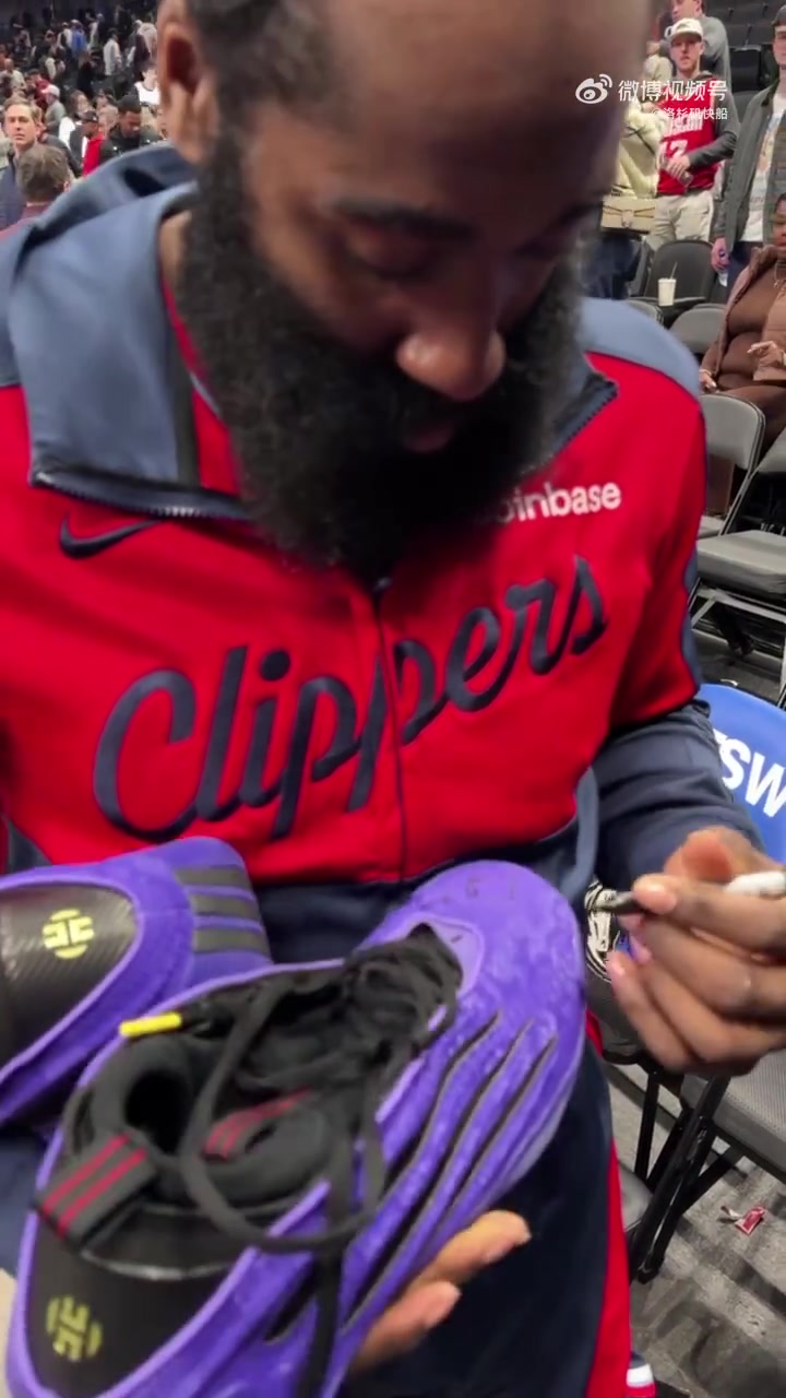 優(yōu)質(zhì)偶像!哈登賽后將本場戰(zhàn)靴簽名 送給客場小登蜜