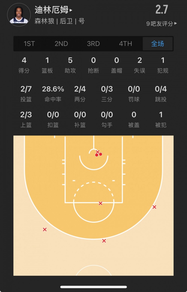 森林狼8號秀 羅布-迪林厄姆 登場16.5分鐘