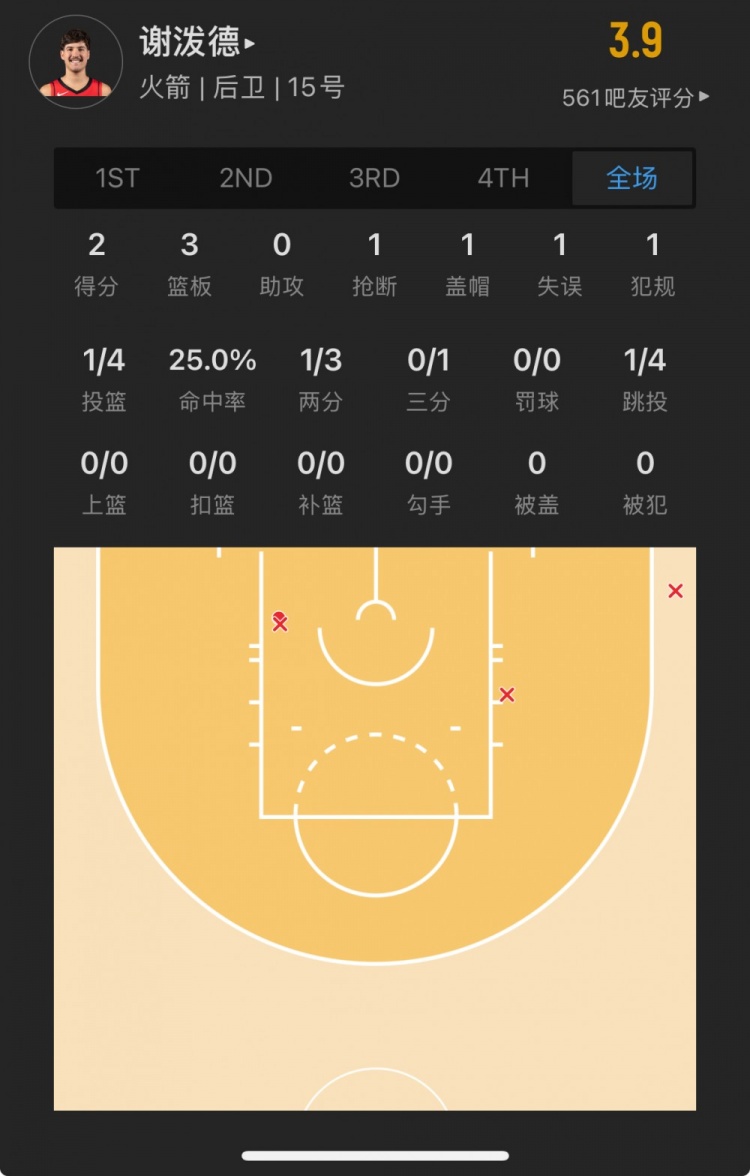 火箭探花秀 里德-謝潑德 登場15.2分鐘