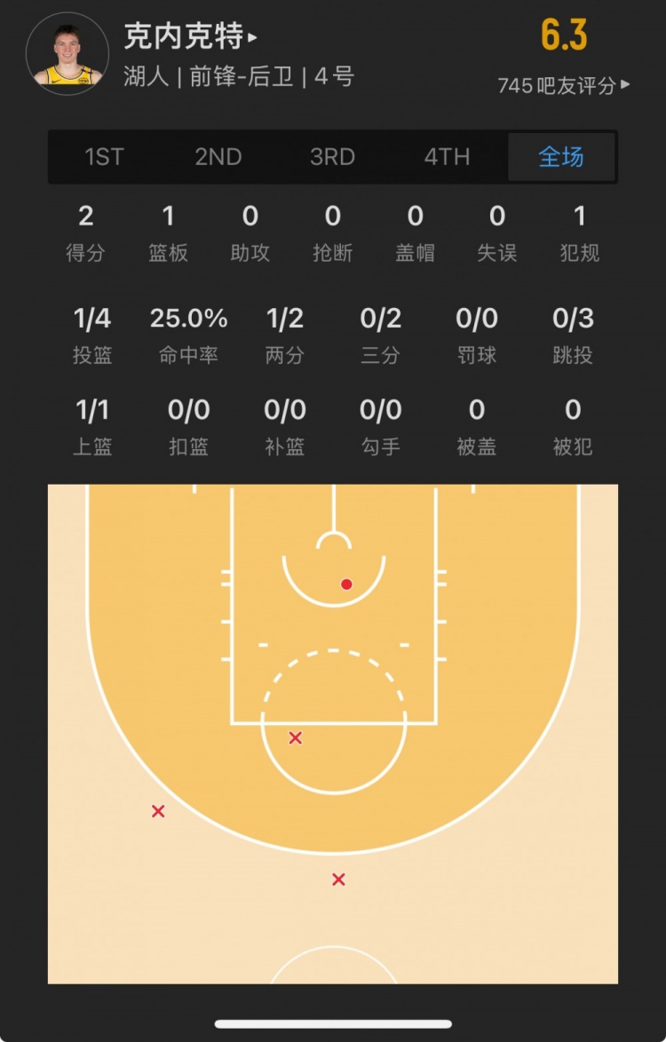 湖人17號秀 道爾頓-克內(nèi)克特 登場10.2分鐘