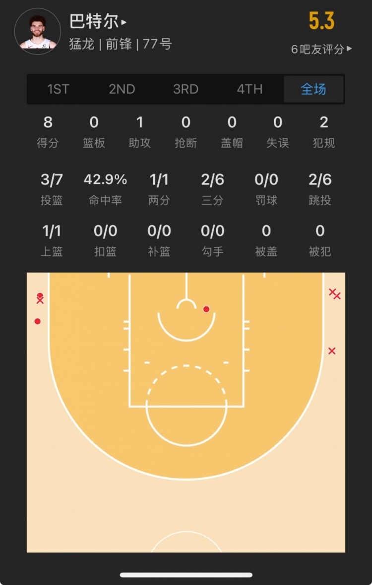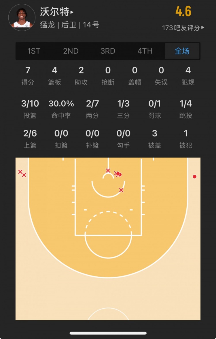 猛龍19號秀 賈科比-沃爾特 登場24.2分鐘