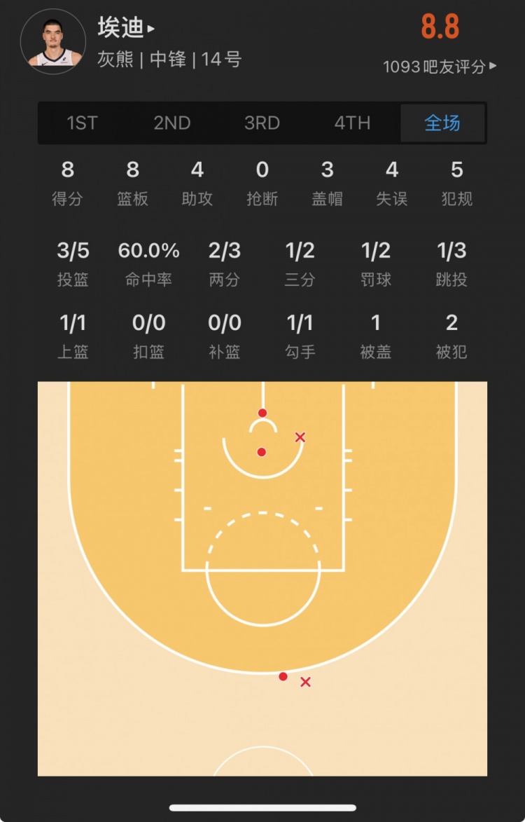 灰熊9號秀 扎克-埃迪 登場23.9分鐘