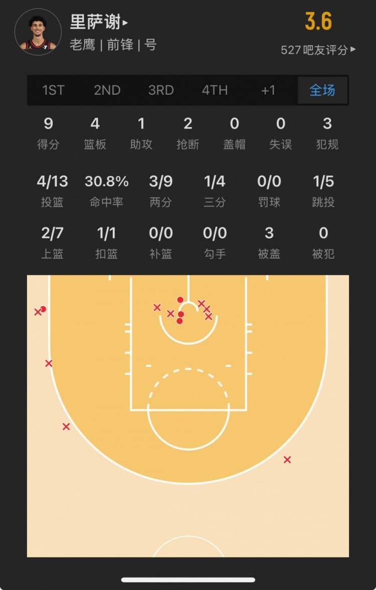 老鷹狀元秀 扎卡里-里薩謝 登場22.1分鐘