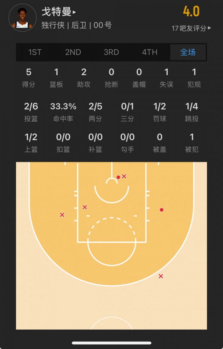 獨行俠落選秀 嘉齊安-戈特曼 登場10.7分鐘