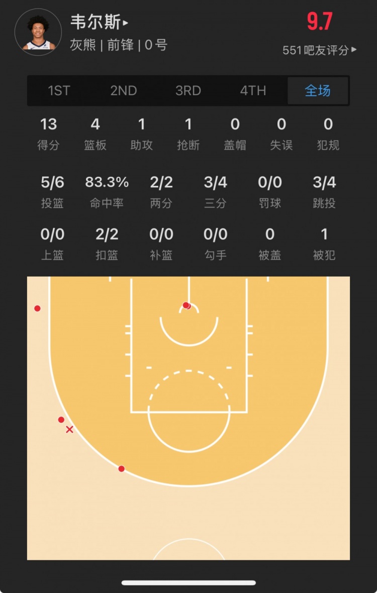 灰熊39號秀 杰倫-韋爾斯 登場19.8分鐘