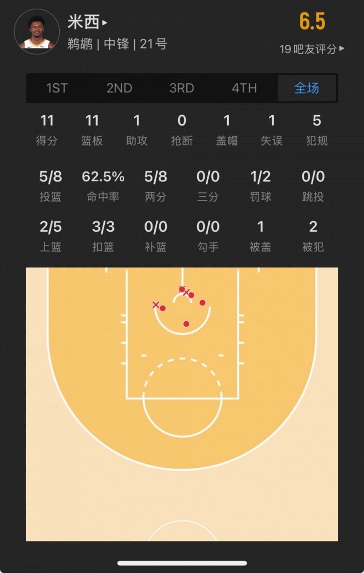 鵜鶘21號秀 伊夫-米西 登場32.6分鐘