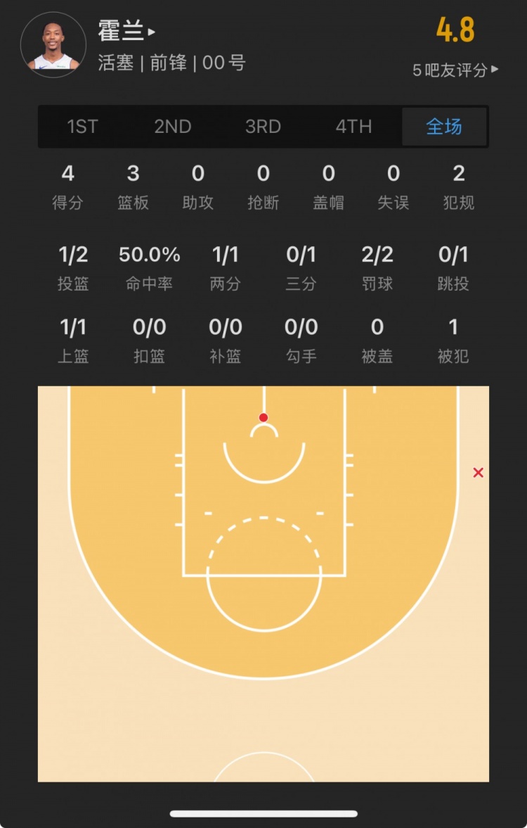 活塞5號秀 羅恩-霍蘭二世 登場12.5分鐘