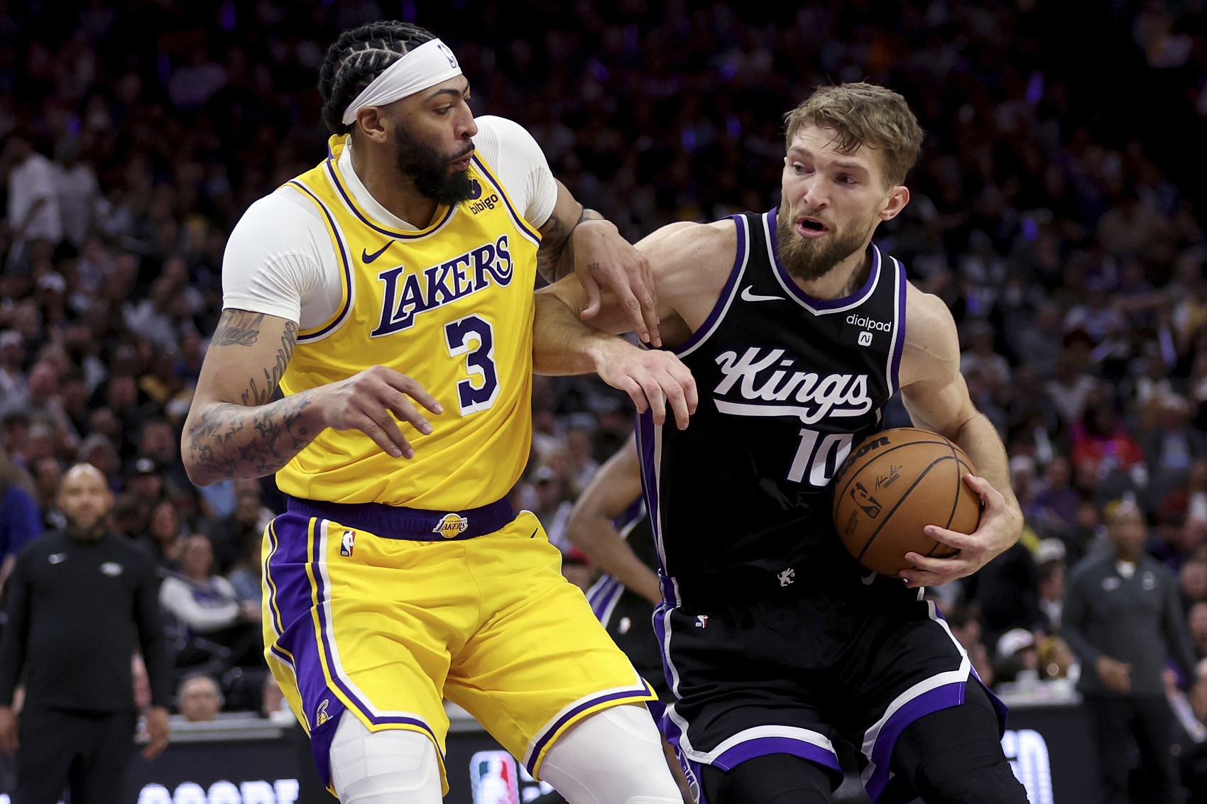 此役,濃眉出戰(zhàn)35分鐘,投籃20中7,三分球1中0,罰球9中7,拿下21分18籃板4助攻3搶斷6蓋帽的數(shù)據(jù),正負值+19。而小薩博尼斯出戰(zhàn)38分17秒,投籃12中8,三分1中1,罰球4中1,得到18分12籃板9助攻2蓋帽,還有5犯規(guī)。