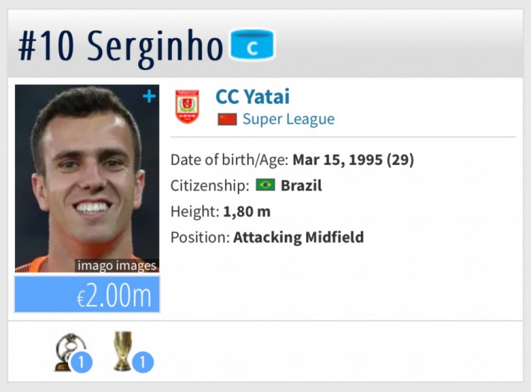 10月30日訊 如果歸化成功,身價200萬歐元的塞爾吉尼奧將成為國足陣中身價最高的球員。