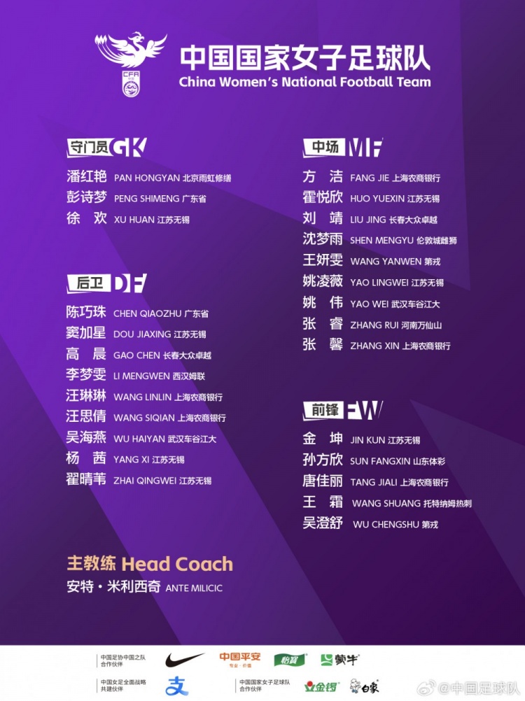 中國女足將于11月14日集結(jié),于11月15日至12月5日赴荷蘭參賽