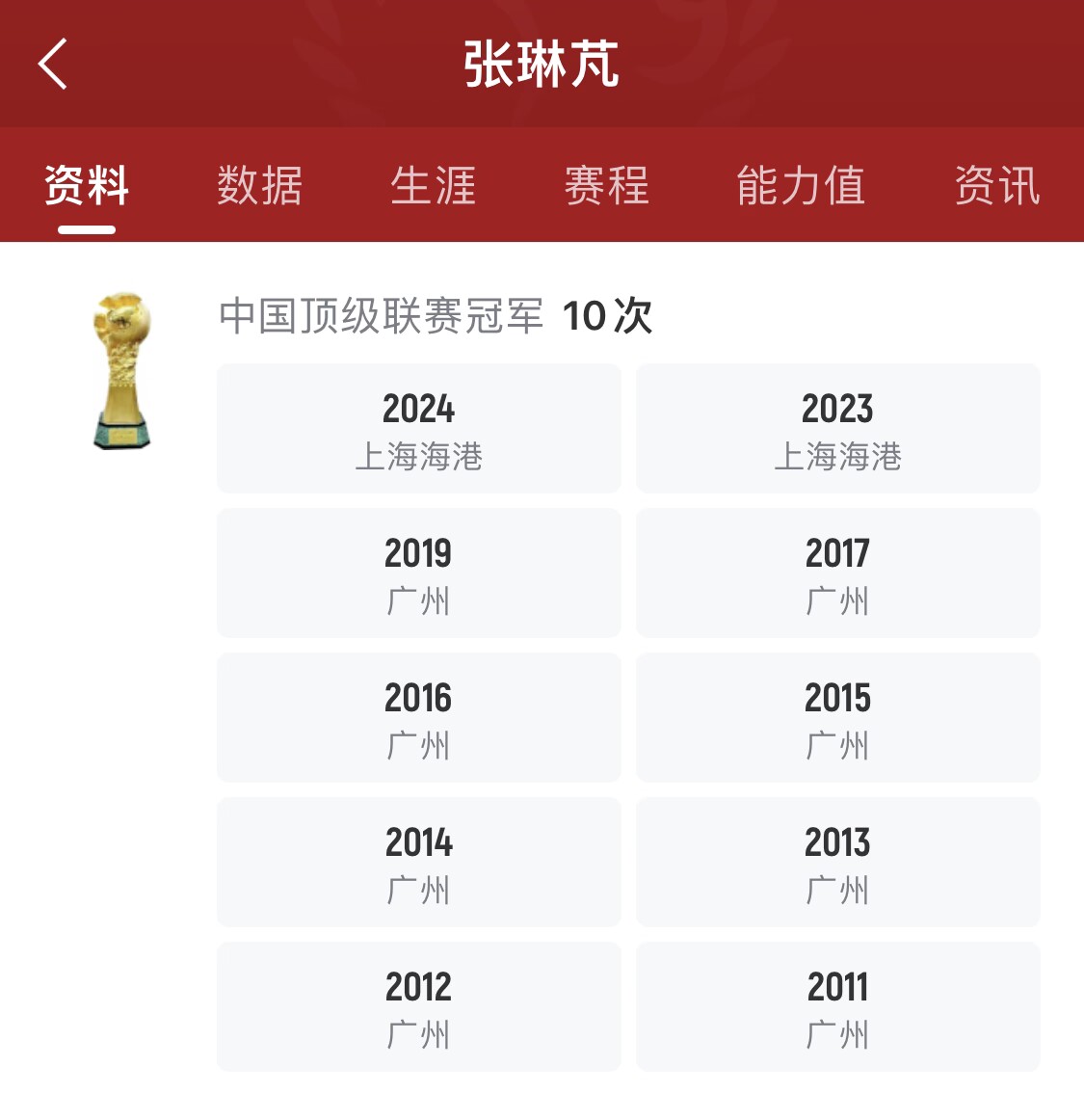 35歲的張琳芃本賽季飽受傷病困擾,回歸海港后再添2冠,生涯的中超冠軍榮譽(yù)已經(jīng)來到10座。