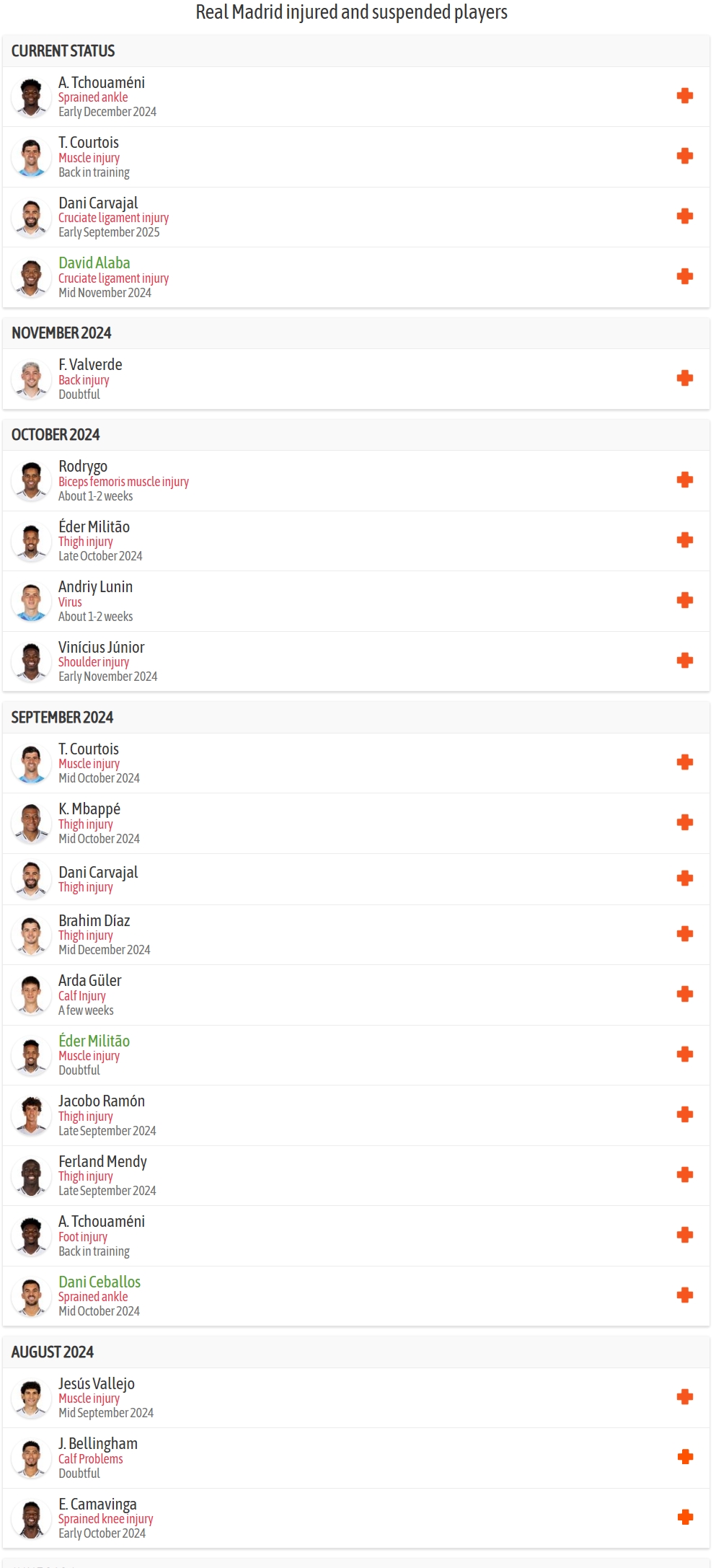 米利唐、羅德里戈以及巴斯克斯加入后,皇馬本賽季傷病人次將達(dá)到25次!