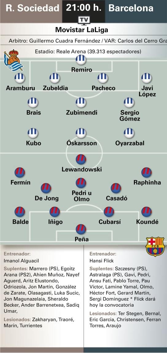 11月10日訊 本輪西甲,巴薩將對陣皇家社會,《世界體育報》撰文對本場首發(fā)進(jìn)行預(yù)測。