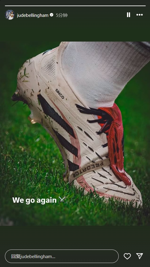 再次出發(fā)!貝林厄姆在Instagram上曬出自己戰(zhàn)靴的圖片