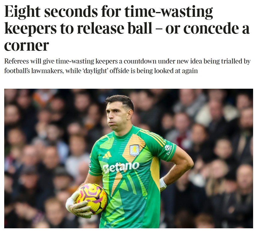 12月06日訊 據(jù)《泰晤士報》報道,足球立法機構(gòu)IFAB(國際足球聯(lián)合會理事會)正在考慮引入一項新規(guī),如果守門員持球時間過長,裁判將判給對方角球。
