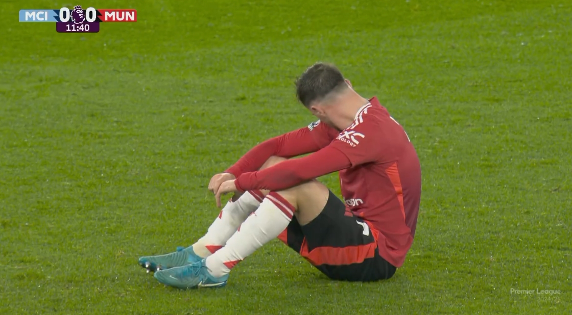 12月16日訊 曼城vs曼聯(lián)第12分鐘,芒特受傷,梅努登場!