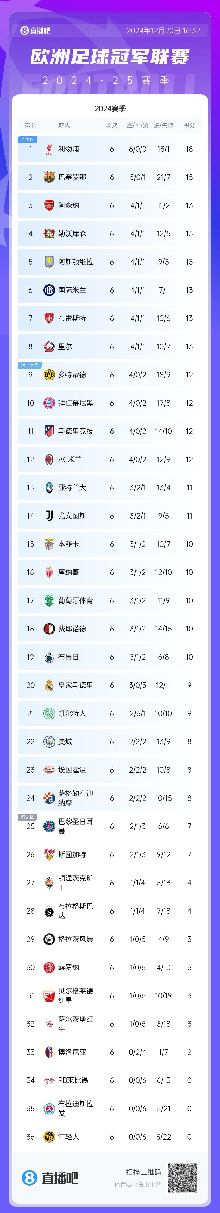 目前,利物浦少賽一場積36分領(lǐng)跑英超,切爾西34分排第二,阿森納30分排第三。