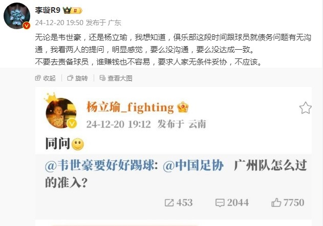 無論是韋世豪,還是楊立瑜,我想知道,俱樂部這段時間跟球員就債務(wù)問題有無溝通,我看兩人的提問,明顯感覺,要么沒溝通,要么沒達成一致。