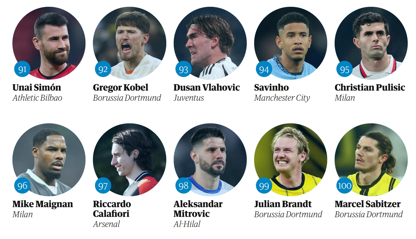 91-烏奈-西蒙、92-科貝爾、93-弗拉霍維奇、94-薩維尼奧、95-普利西奇、96-邁尼昂、97-卡拉菲奧里、98-米特羅維奇、99-布蘭特、100-薩比策