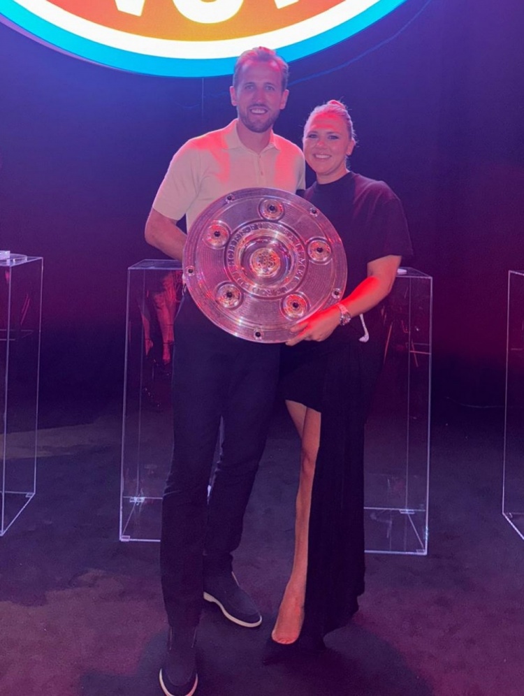 慶祝不停歇!妻子社媒曬手捧沙拉盤與凱恩合照:德甲冠軍