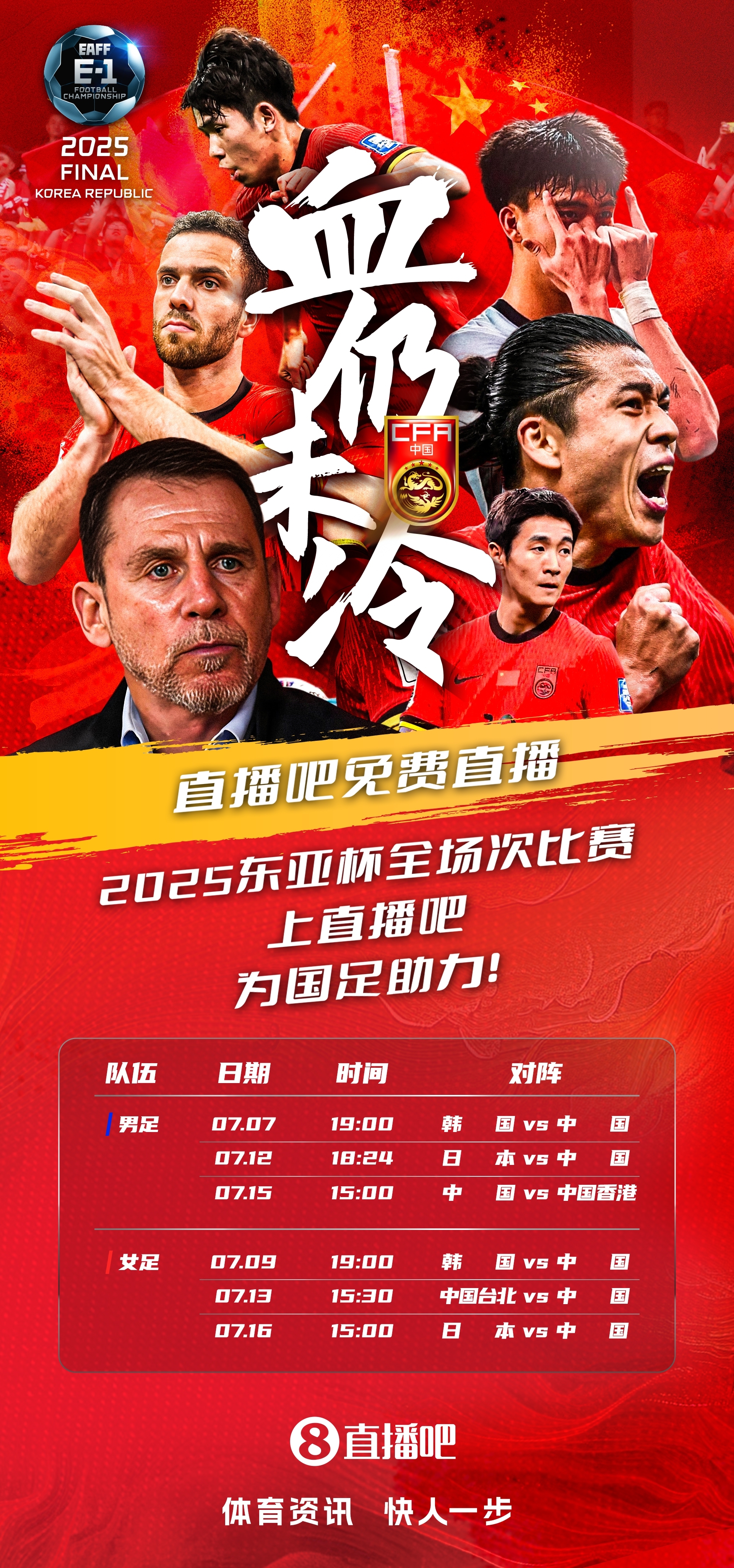 北京時(shí)間今晚19:00,2025東亞杯正式拉開帷幕,國(guó)足將在首場(chǎng)比賽對(duì)陣東道主韓國(guó)。作為賽事版權(quán)方,將會(huì)全程免費(fèi)視頻直播本屆所有男足/女足東亞杯賽事。今晚久爾杰維奇的帶隊(duì)首秀,將由于鑫淼&楊晨帶來(lái)解說(shuō)?!疽曨l直播間:國(guó)足vs韓國(guó),于鑫淼/楊晨解說(shuō)】。