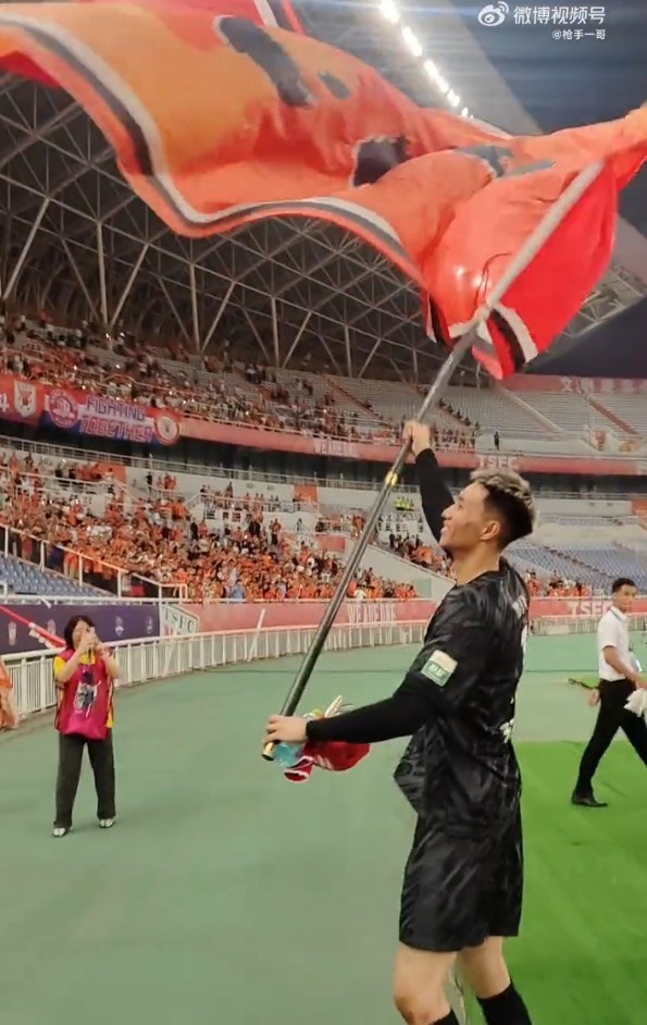 首發(fā)打滿全場助泰山贏球,于金永賽后揮舞旗幟與球迷互動