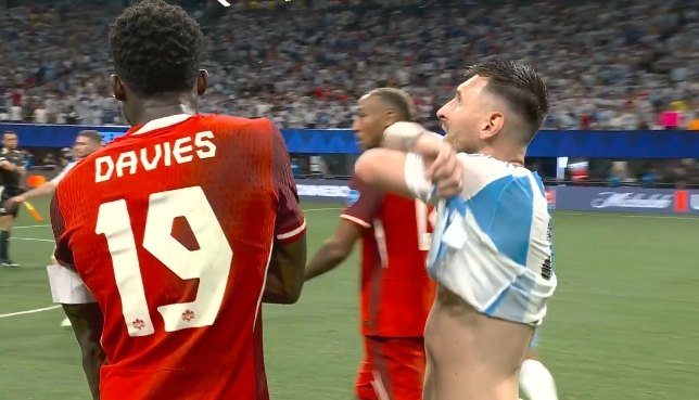 例行環(huán)節(jié)!賽后梅西與阿方索-戴維斯交換球衣