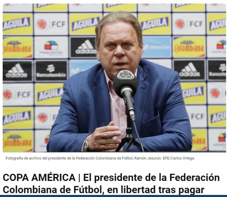支付2000美元保釋金!西媒:哥倫比亞足協(xié)主席及其兒子獲釋
